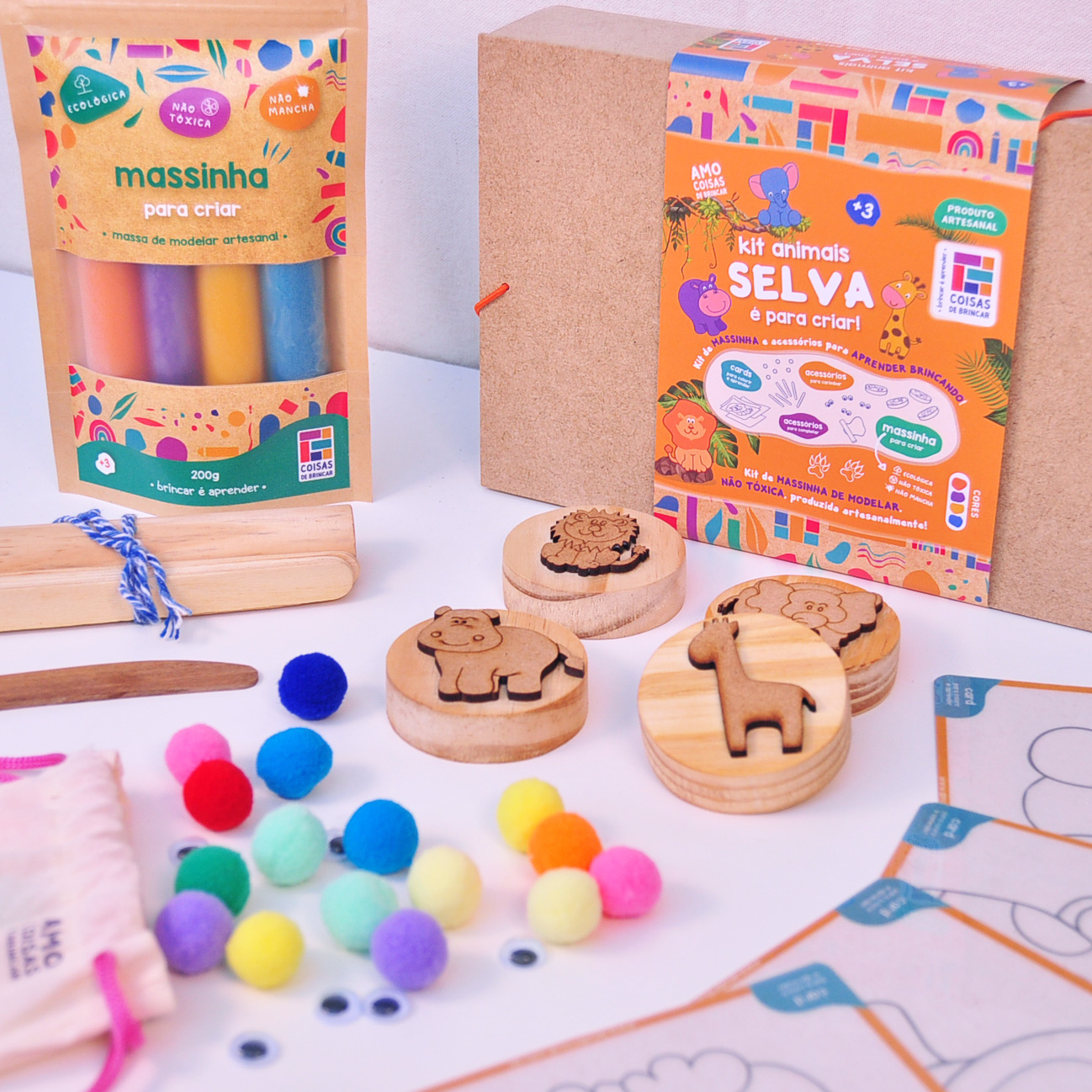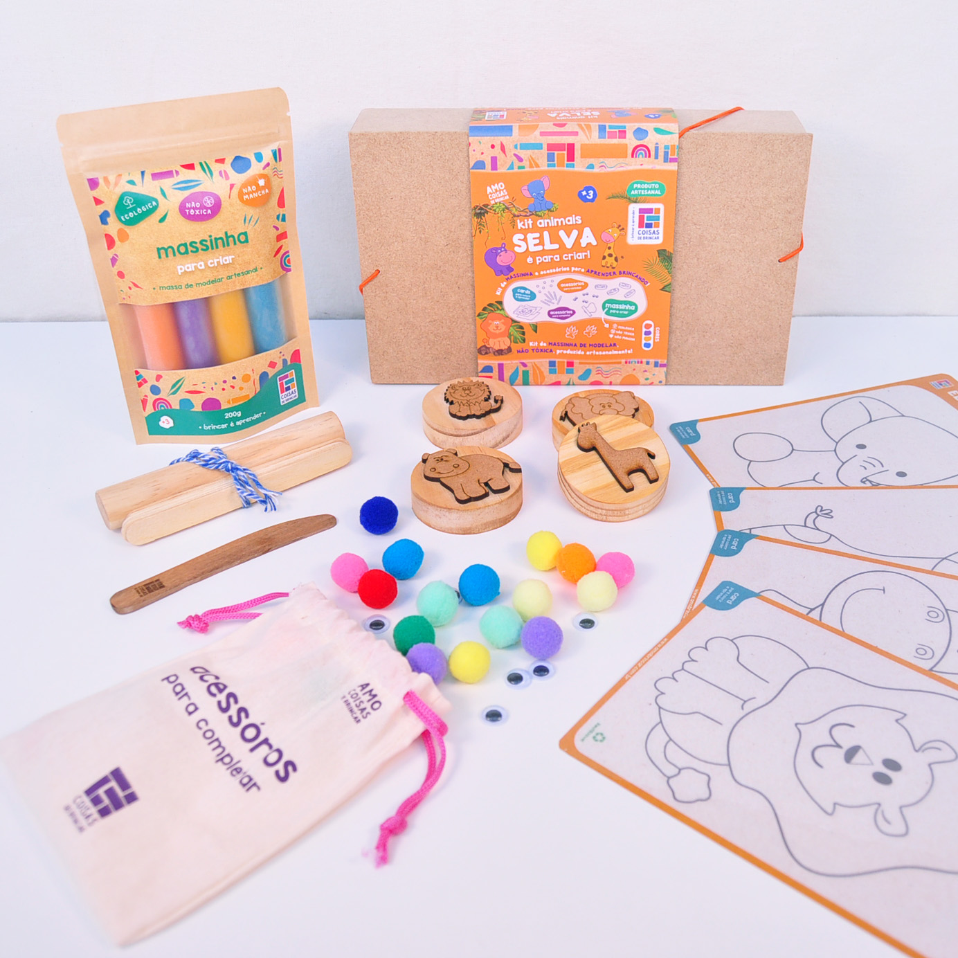 Kit de Massinha para Criar, Cards, Carimbos e Acessórios para criar e se divertir com os animais da Selva!